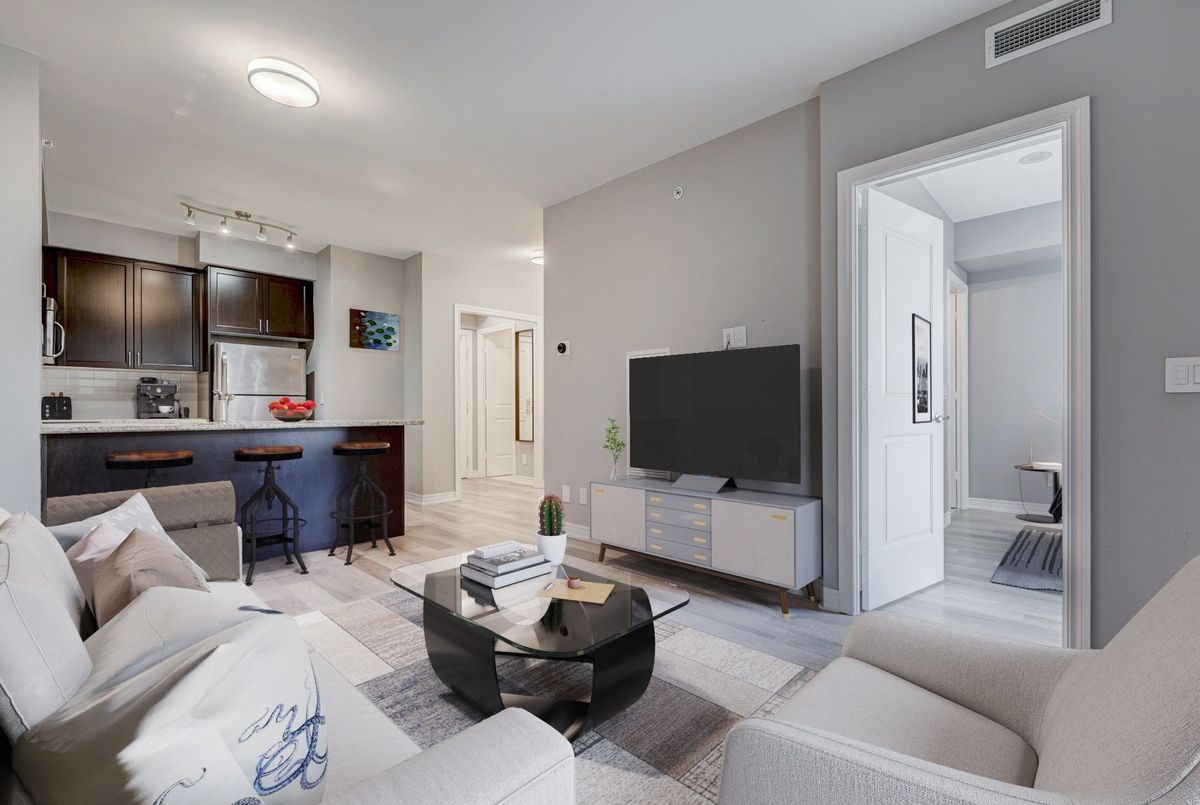 Experience The Pinnacle Of Refined Living At Bellaria Tower 4. This Isn't Just A Condominium; It's A Lifestyle Statement Defined By Space, Security, And An Unbeatable Location. Nestled Within A Master-Planned Community, Bellaria Tower 4 Offers A Rare Blend Of Tranquil Green Spaces And High-Octane Urban Convenience. Step Into A Sanctuary Featuring A Spacious, Open-Concept Floor Plan That Maximizes Every Square Foot. This Modern Suite Is Elevated By Premium Upgrades And A Versatile Den Area, Perfect For A Home Office. The Primary Bedroom Serves As A True Retreat, Boasting A Generous Walk-In Closet And A Private 4-Piece Ensuite Bath. Convenience Is Key With Integrated In-Suite Laundry, But The Real Showstopper Is The Seamless Transition From The Living Area To Your Private Balcony. Finished With Sleek Tile Flooring, It Offers An Outdoor Extension Of Your Living Space-Ideal For Morning Coffees Or Sunset Relaxation. The Amenities- Five-Star Living: Residents Enjoy Access To World-Class Facilities. Health Enthusiasts Will Thrive In The State-Of-The-Art Exercise Centre, Fitness Pool, And Rejuvenating Steam Room. For Hosting, The Building Offers Sophisticated Party Rooms, An Entertainment Lounge, And A Billiards Room. Out-Of-Town Visitors Are Easily Accommodated In Luxurious Guest Suites. Outside, You Are Surrounded By Professionally Manicured Gardens And A Dedicated BBQ Area. Peace Of Mind Is Paramount With A 24-Hour Guarded Gatehouse And Concierge Services Ensuring Elite-Level Security. The Location- At The Centre Of It All; You Are Minutes From Vaughan Mills Mall, Cortellucci Hospital, And Canada's Wonderland. Commuting Is A Breeze With Rapid Access To Hwy 400 & 407, The GO Train, And Extensive Transit Networks. This Unit Is A MUST SEE!