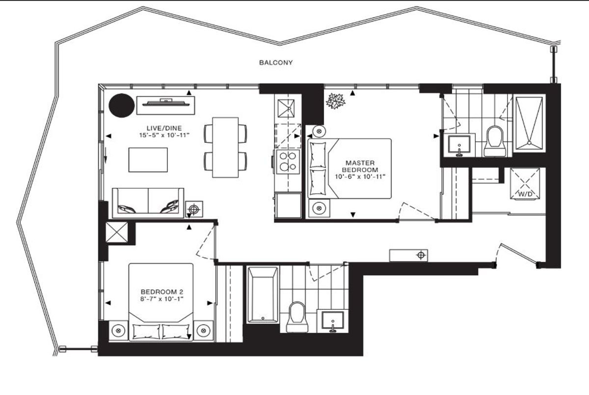 Welcome to 36 Zorra Street, where smart design meets contemporary urban living in this beautifully laid out suite. This residence offers a bright, open concept living and dining area, perfectly positioned along a wall of windows that fill the space with natural light and provide direct access to an oversized private balcony. The modern kitchen is efficiently designed and ideal for both everyday living and entertaining. The primary bedroom features generous proportions, excellent closet space, and convenient access to a full bathroom, creating a comfortable and private retreat. A well sized second bedroom offers flexibility for guests, a home office, or a growing family. Two full bathrooms add everyday functionality and convenience, while thoughtful storage solutions throughout the suite enhance livability. With a functional layout, excellent separation of living and sleeping areas, and seamless indoor outdoor flow, this suite is ideal for professionals, couples, or downsizers seeking style and comfort. Located in a vibrant and rapidly evolving South Etobicoke community, 36 Zorra Street offers easy access to transit, major highways, shops, dining, and everyday amenities, making it an exceptional place to call home.